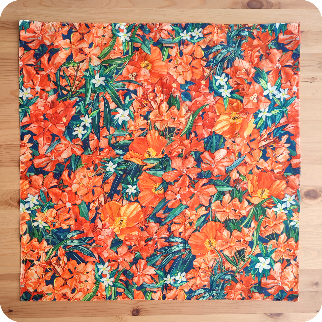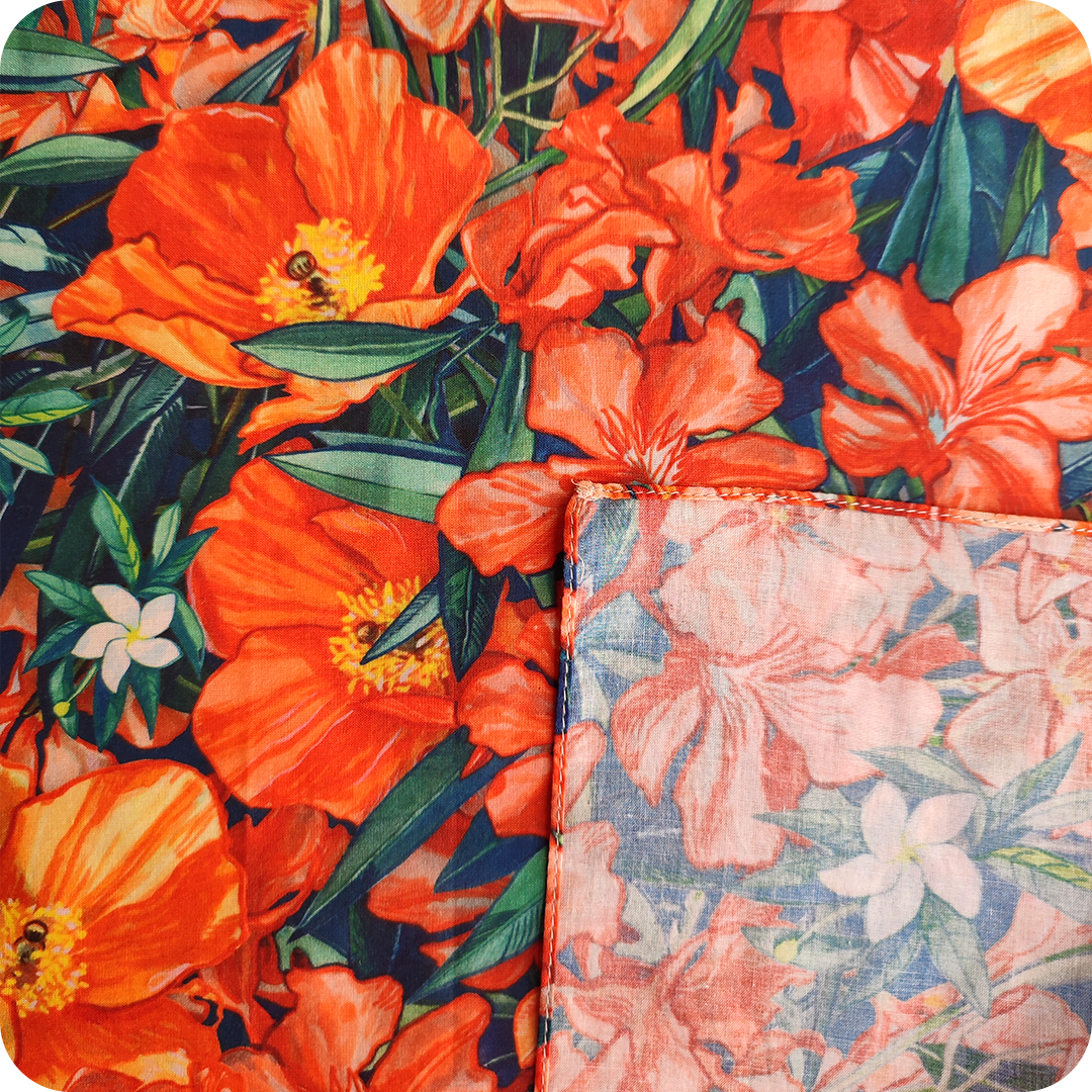 È in morbido e fresco popeline di cotone stampato. Ha un sottile orlo perimetrale per rifinirla. Perfetta per dare un tocco di colore e originalità a qualsiasi look, sia che la si voglia utilizzare per legare i capelli o per proteggere il collo durante la mezza stagione.
